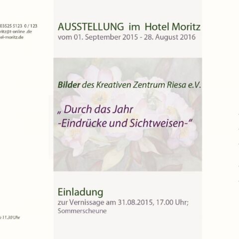 Die Werke werden in den öffentlichen Räumen des Hotels ausgestellt. Gegenwärtig findet die 10. Ausstellung statt. Zu besichtigen sind die Bilder des Riesaer Kreativen Centrum e.V. "Durch das Jahr - Eindrücke und Sichtweisen". In diesem Rahmen stellen 15 Künstler ca. 100 Bilder bis Ende Dezember 2016 aus.