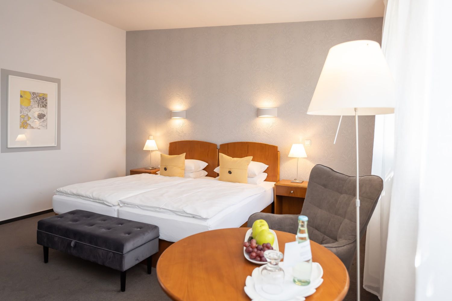 Unsere Zimmer sind großzügig und hochwertig eingerichtet, verfügen über Dusche/WC, Fön, über Flachbild-SAT-TV, WLAN-Empfang und sind bequem über den Aufzug erreichbar.