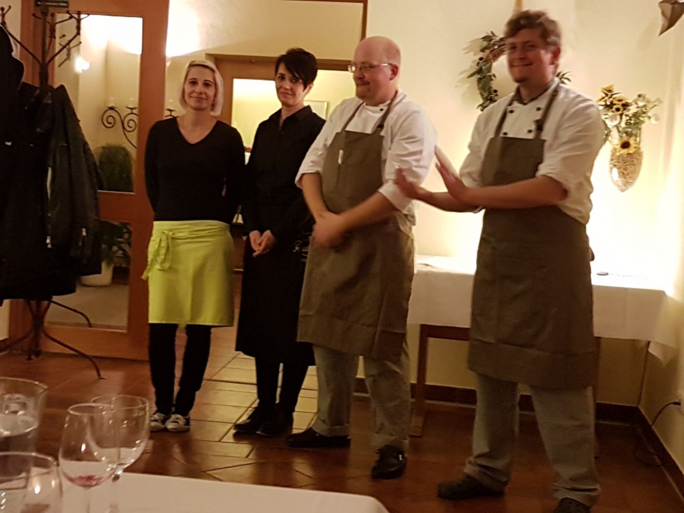 Die Weine werden von Frau Schurr ausgewählt und vorgestellt und zusätzlich bereiten Ihnen unsere Köche ein korresponidierendes 4-Gang-Menü aus der herbstlichen Küche zu. Dazu reichen wir Ihnen Wasser, Kaffee und Espresso nach dem Dessert.