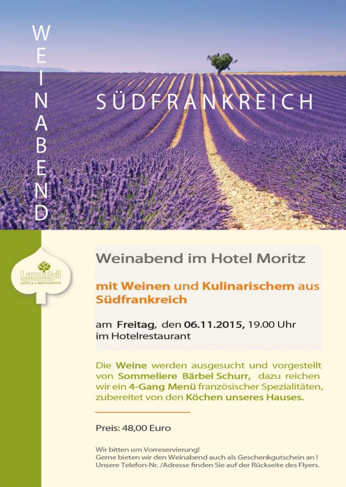 Auch dieses Jahr veranstalten wir wieder unseren alljährlichen Weinabend. Durch den Abend begleiten Sie unsere Freundin, Sommeliere und ehemalige Weinkönigin Bärbel Schurr, Moderator Thomas Großmann, unser Service- und Küchenteam und wollen Ihnen die Weine und kulinarischen Spezialitäten aus einigen Ecken Deutschlands ein Stück näher bringen.