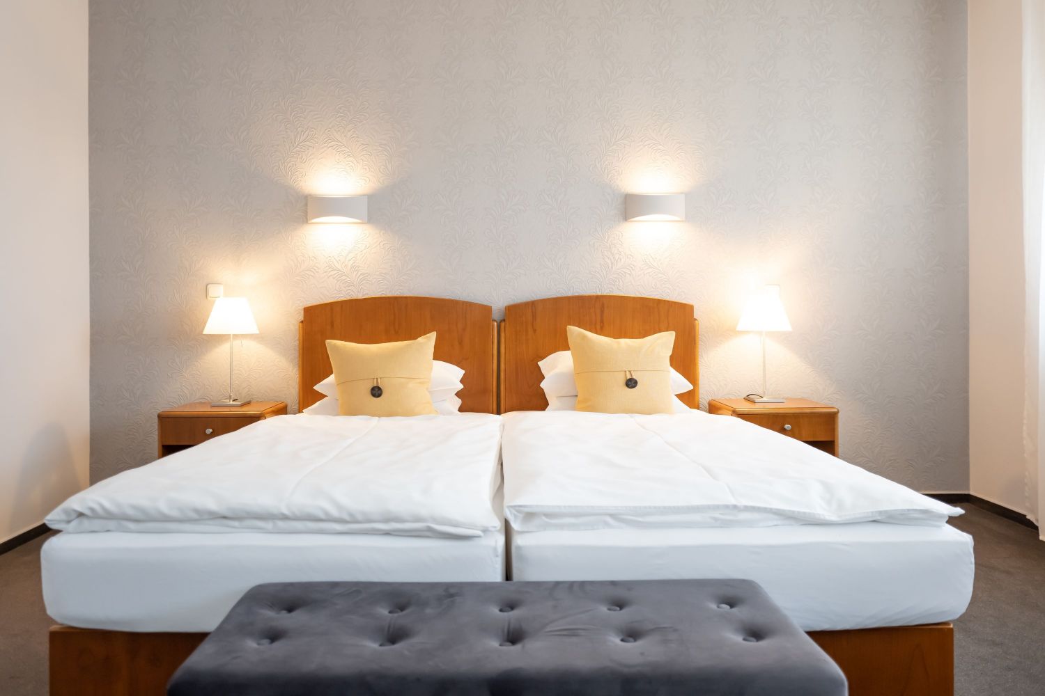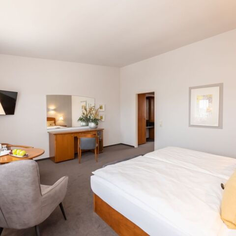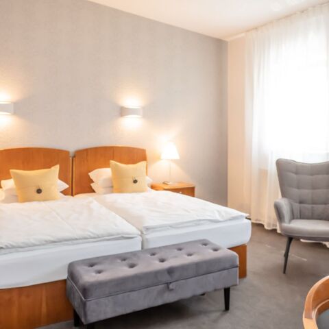 Unsere Zimmer sind großzügig und hochwertig eingerichtet, verfügen über Dusche/WC, Fön, über Flachbild-SAT-TV, WLAN-Empfang und sind bequem über den Aufzug erreichbar.