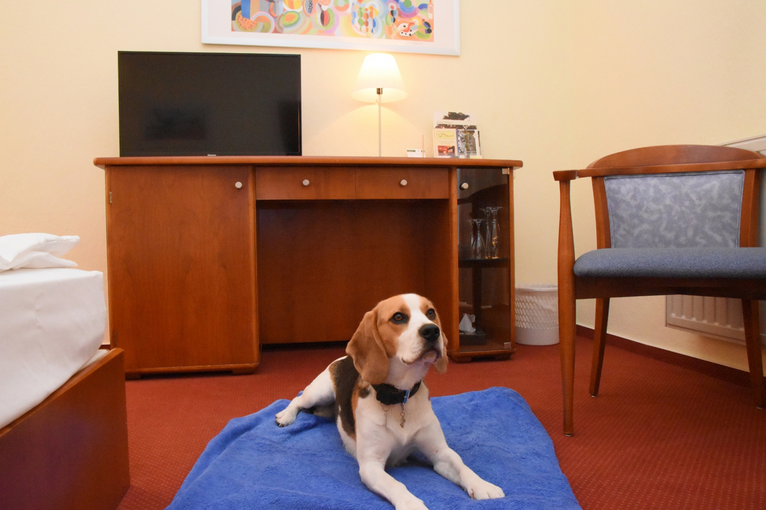Wenn Sie Ihr Zimmer für die Mahlzeiten verlassen, hängen Sie bitte das Schild "Bitte nicht stören" von außen an die Tür. Sollten Sie das Hotel für längere Zeit verlassen, ist es nicht gestattet, dass Ihr Hund allein im Hotelzimmer bleibt. Wir bitten um Ihr Verständnis.